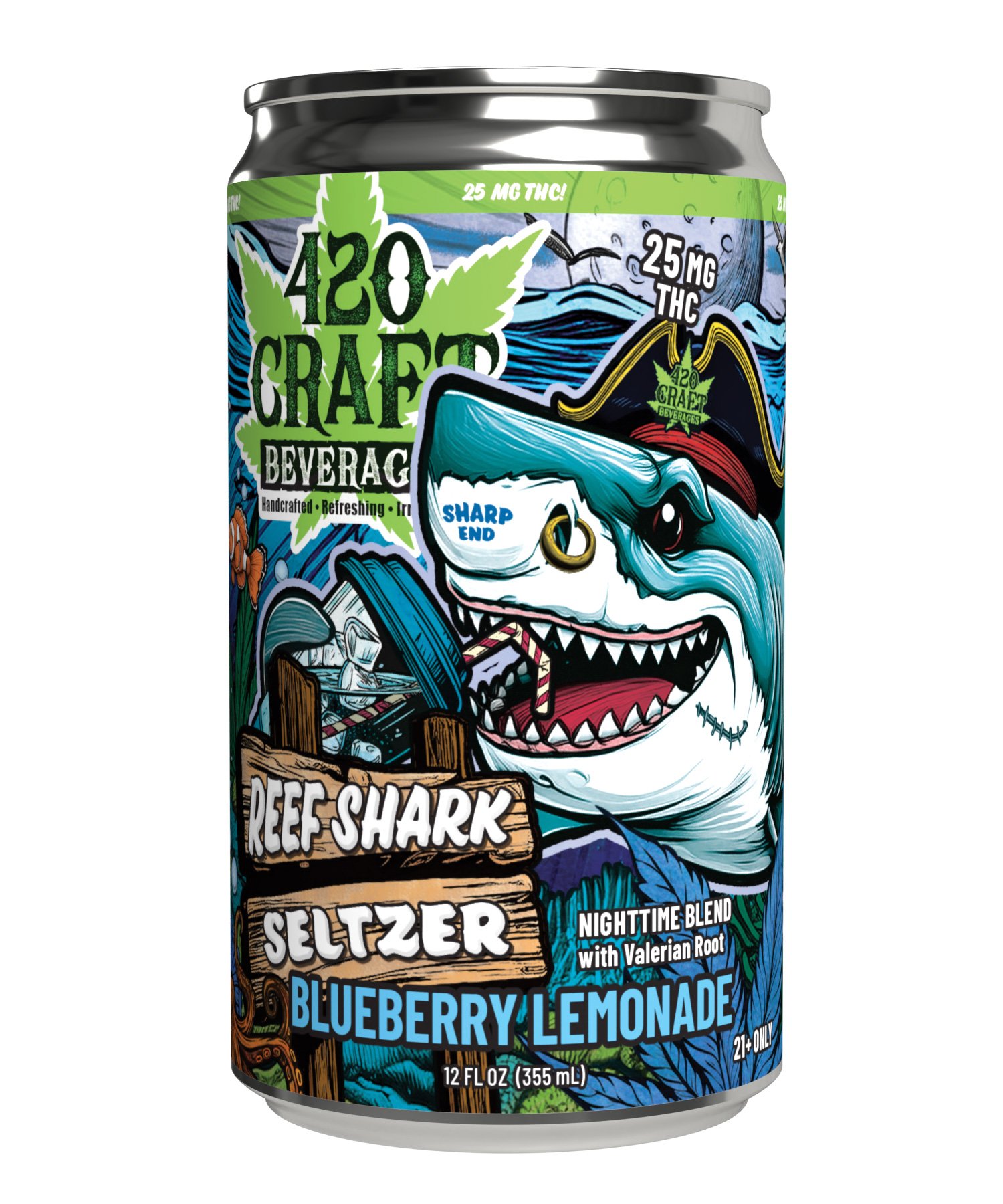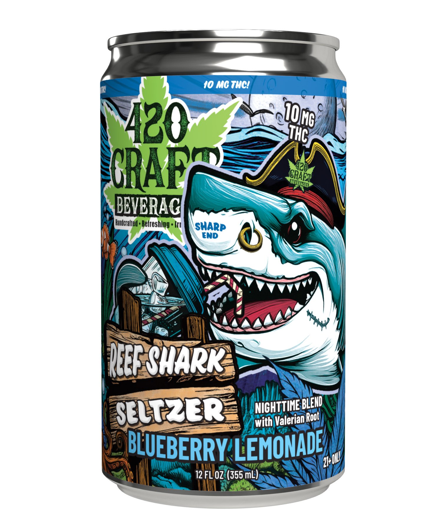 Cannabis-infused sparkling seltzer with blueberry lemonade flavor, an alternative to sugary sodas