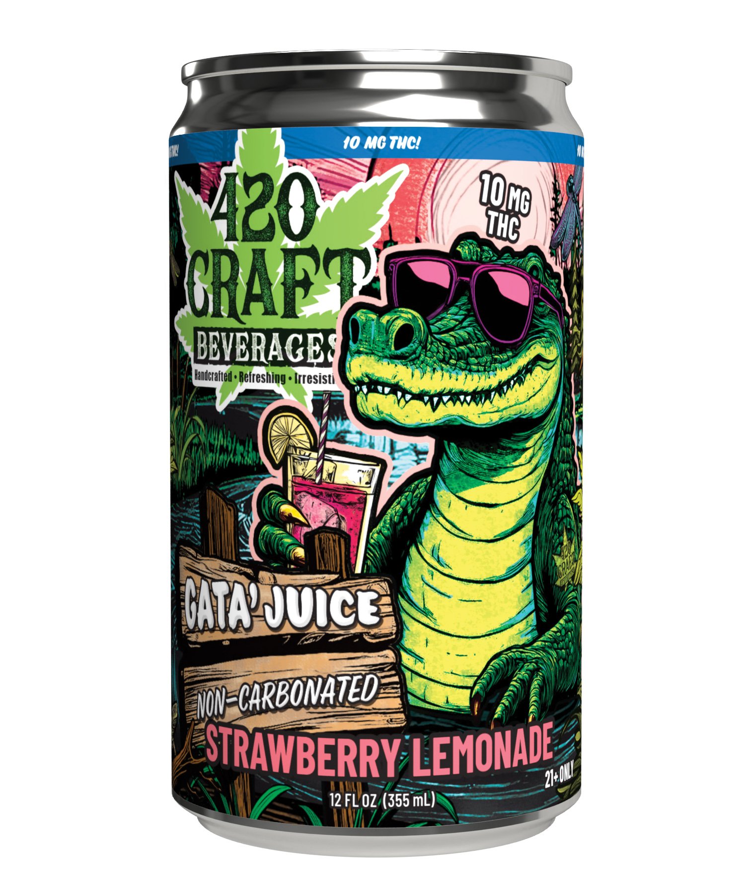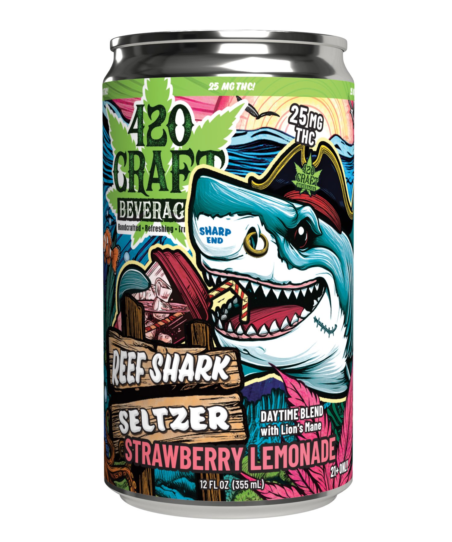 Cannabis-infused sparkling seltzer with strawberry lemonade flavor, an alternative to sugary sodas